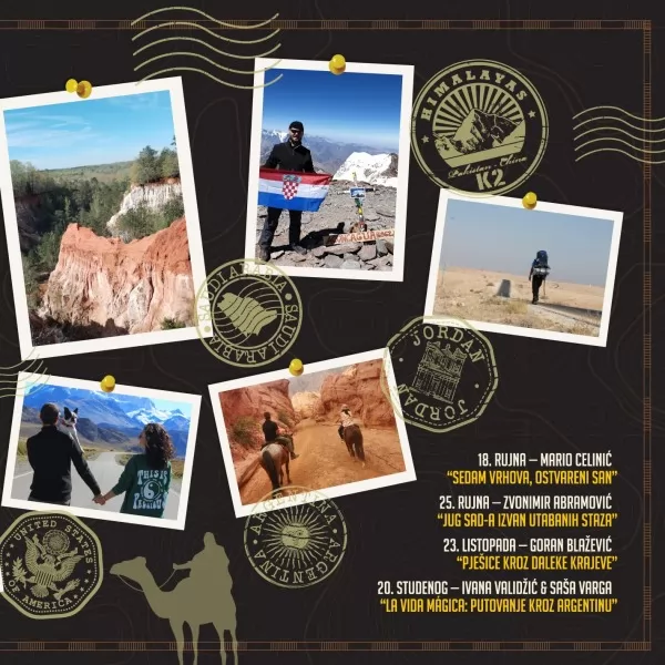 Serijal započinje u četvrtak, 18. rujna 2025. u 19 sati predavanjem Marija Celinića, Hrvata koji je osvojio najviše vrhove svih kontinenata. Osim što je uspješan alpinist i pisac, Mario skija, roni, jedri i vozi motocikl, a na predavanju će predstaviti svoju knjigu “Sedam” i ispričati kako je ostvario san kroz niz zahtjevnih ekspedicija diljem svijeta.